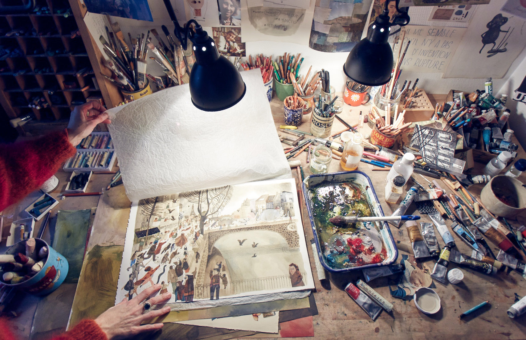 Мой рабочий стол годами покрыт панцирем из пятен. Это не романтичный образ безумного гения — лишь следствие вечного хаоса в голове, который иногда изматывает. Больше всего я люблю писать и рисовать в тихих и светлых местах, особенно в полях.