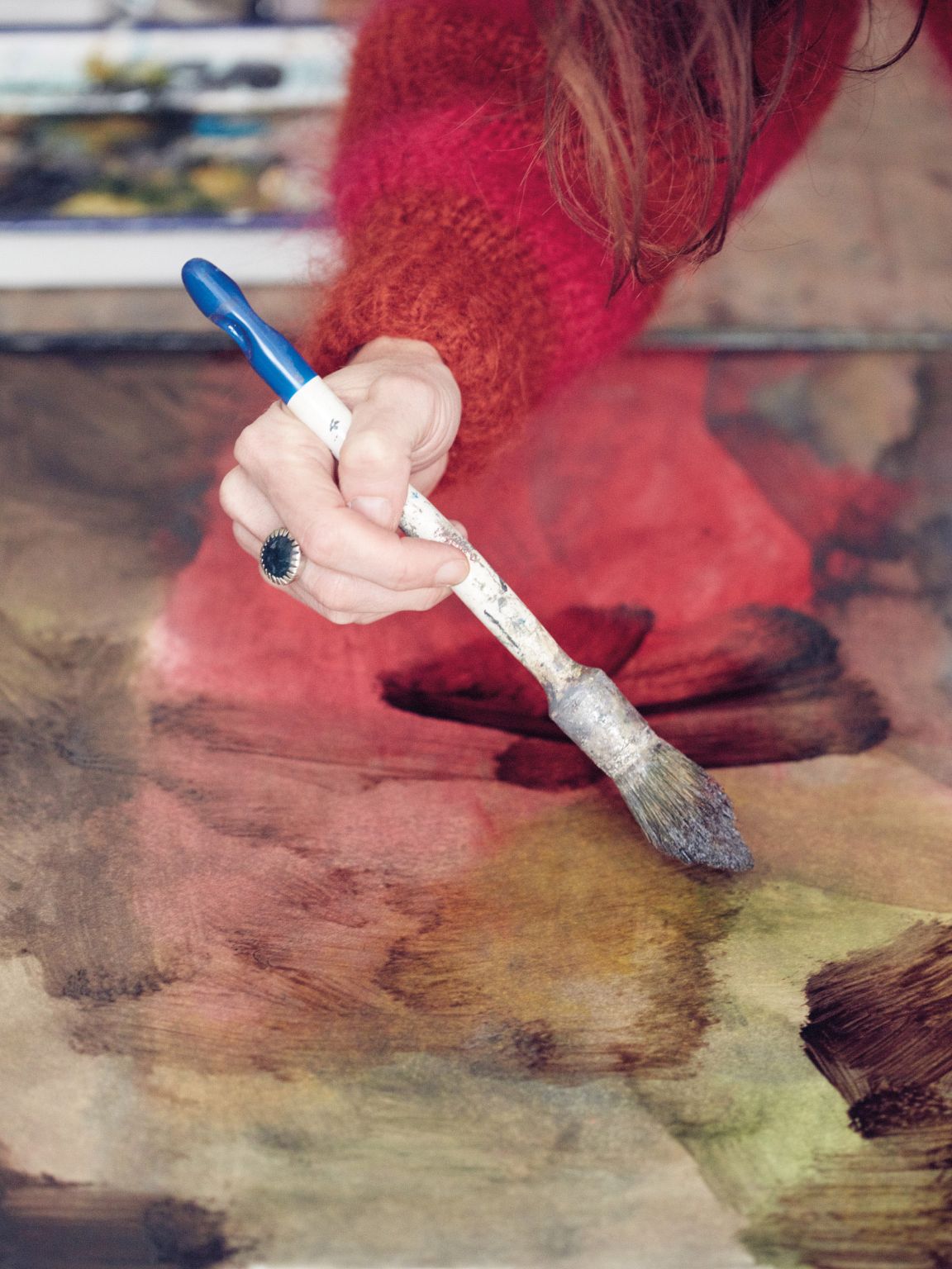— Боюсь разочаровать вас, но я совершенно неорганизованна! Никакого порядка в процессе или технике. Я безжалостно мну тюбики с краской, сую кисти — грязные и потрёпанные — в банки без разбора. Я небрежна к инструментам: например, всегда ломаю карандаши и пастель просто из упрямства.