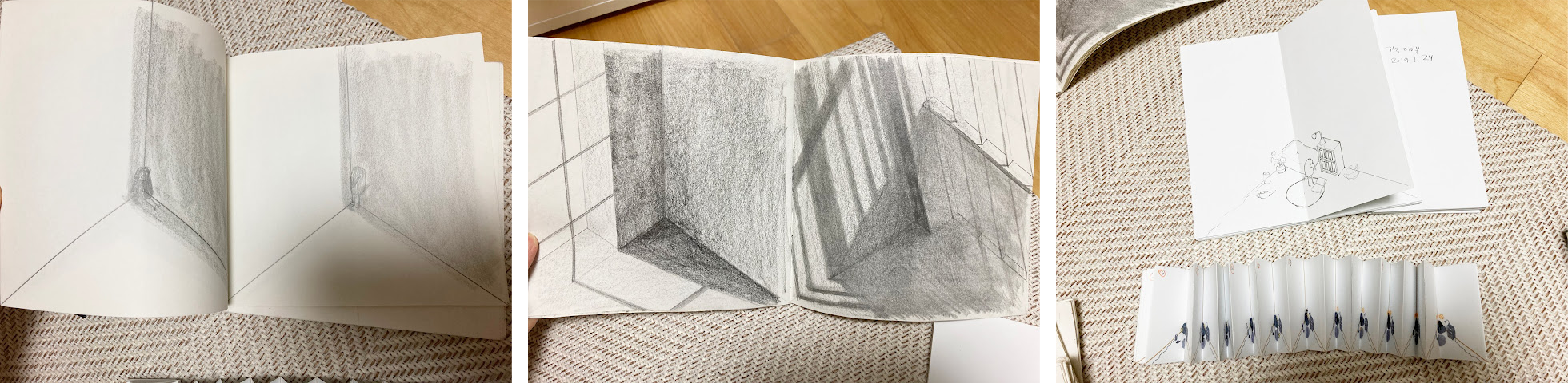— Меня всегда интересовало рисование пространства и структуры, и самым близким и знакомым элементом пространства для меня оказался угол. Угол напоминает мне моё детство, когда я играла одна, прячась ото всех. Когда я работала над этой книгой, я поднималась и спускалась по лестницам своего многоквартирного дома ради упражнений, и у меня была возможность наблюдать за каждым уголком. Как вы можете предположить, там можно найти что-то вроде пыли. Но ещё в углу можно найти кое-что ещё в зависимости от того, кто там находится и где это место, и это привлекло мой интерес.