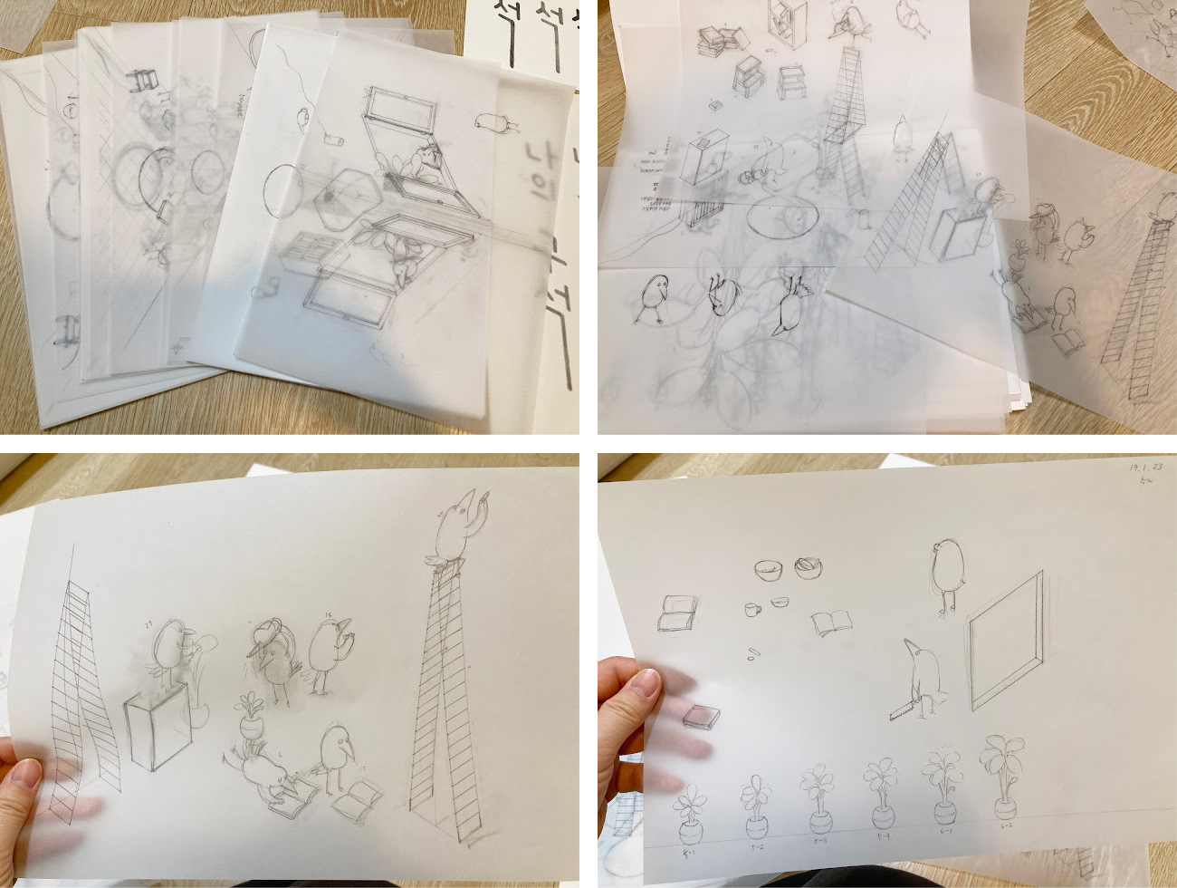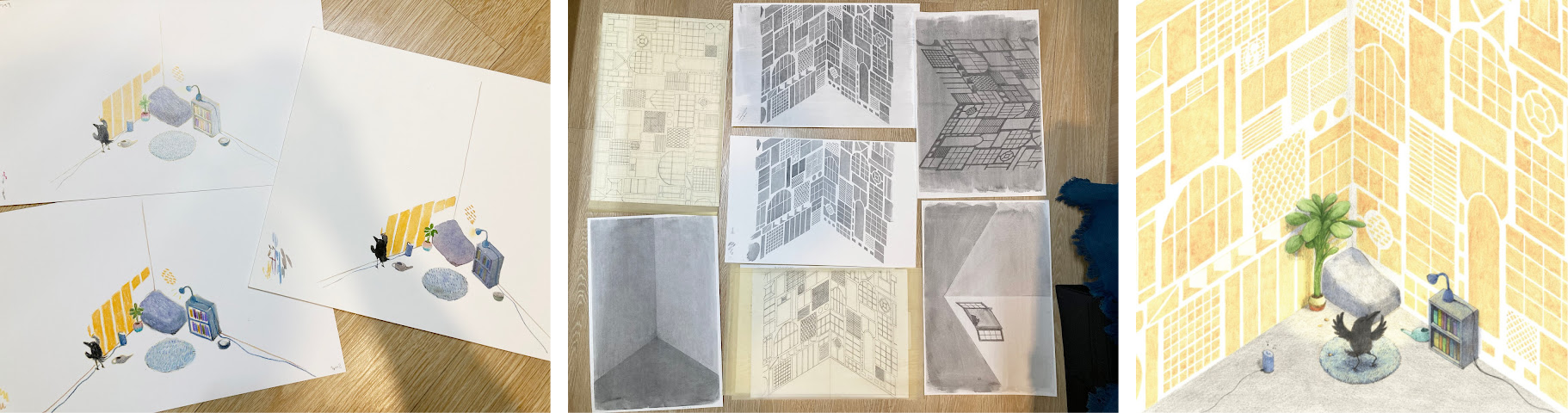 Я подумала, что угол, который создавался годами, может стать средством самовыражения, как в случае с вороной, которая заполняет свой угол вещами, выражающими её саму. И собирая такие идеи воедино, я создала эту книжку-картинку. От разработки идей до публикации книги прошёл почти год.